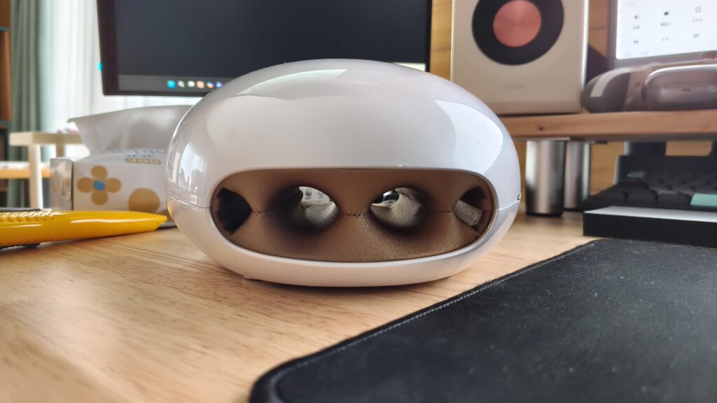 さらにコードレスなので場所を選ばないのがポイント!主に寝室と仕事部屋で使うことが多いですが、Type-Cで充電するだけなので、いつでも充電できて持ち運びも簡単。